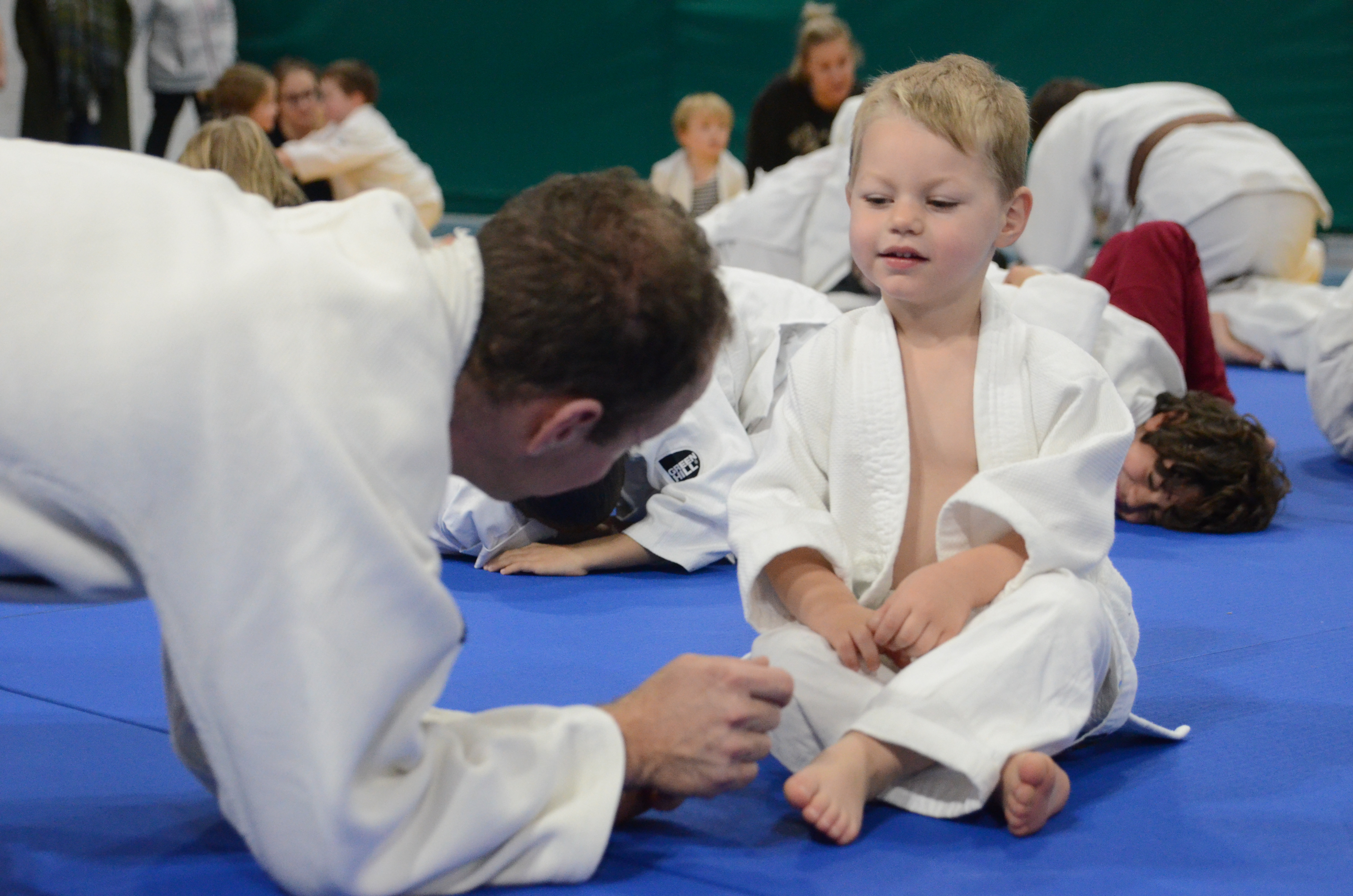 Ce vendredi, nous étions donc une centaine à (ré)apprendre quelques bases de judo… en famille.